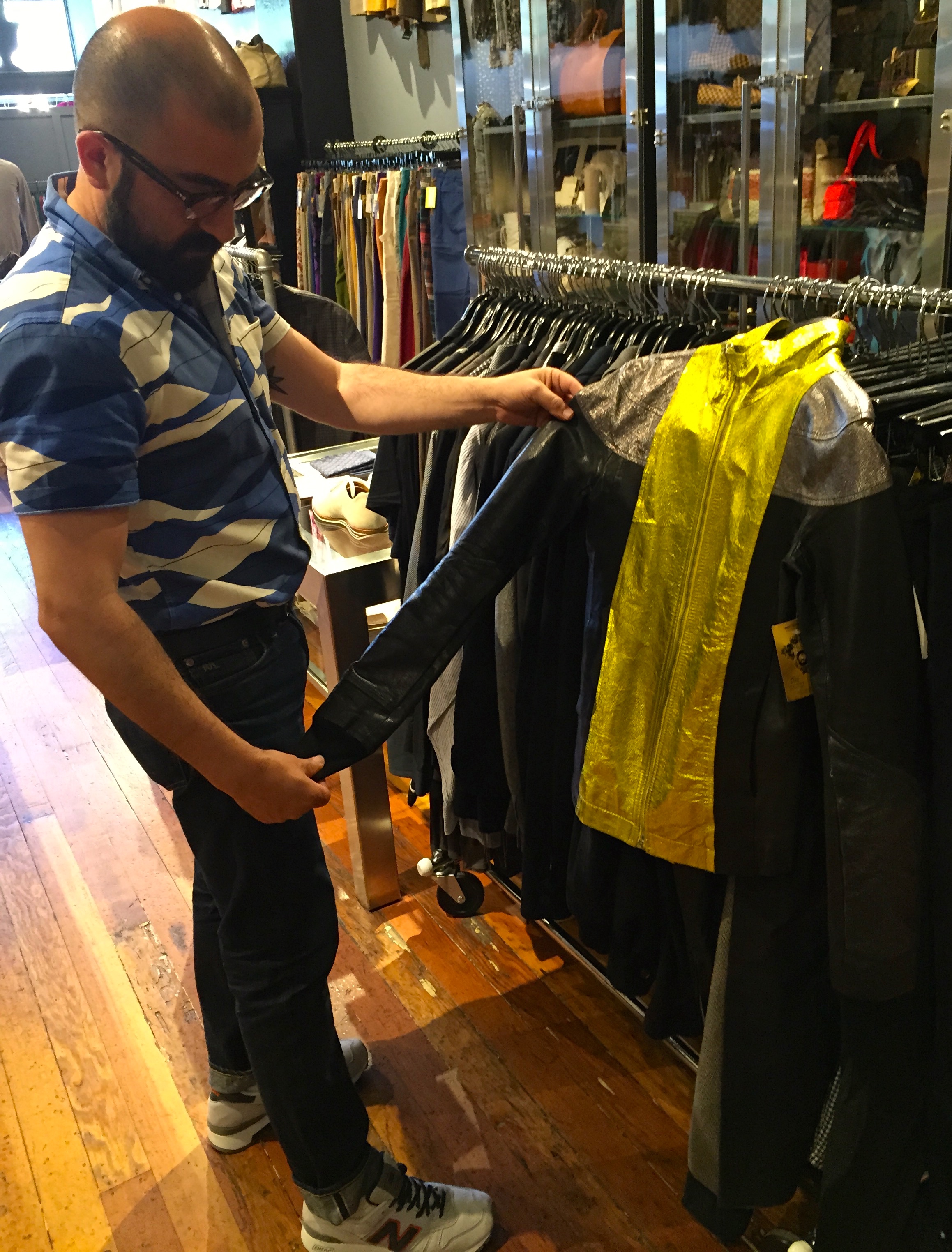 M: An early 90s original Versace gold lamé leather jacket with mink collar. It took a few months to sell, but went to a really nice home. It sold for around two thousand dollars.