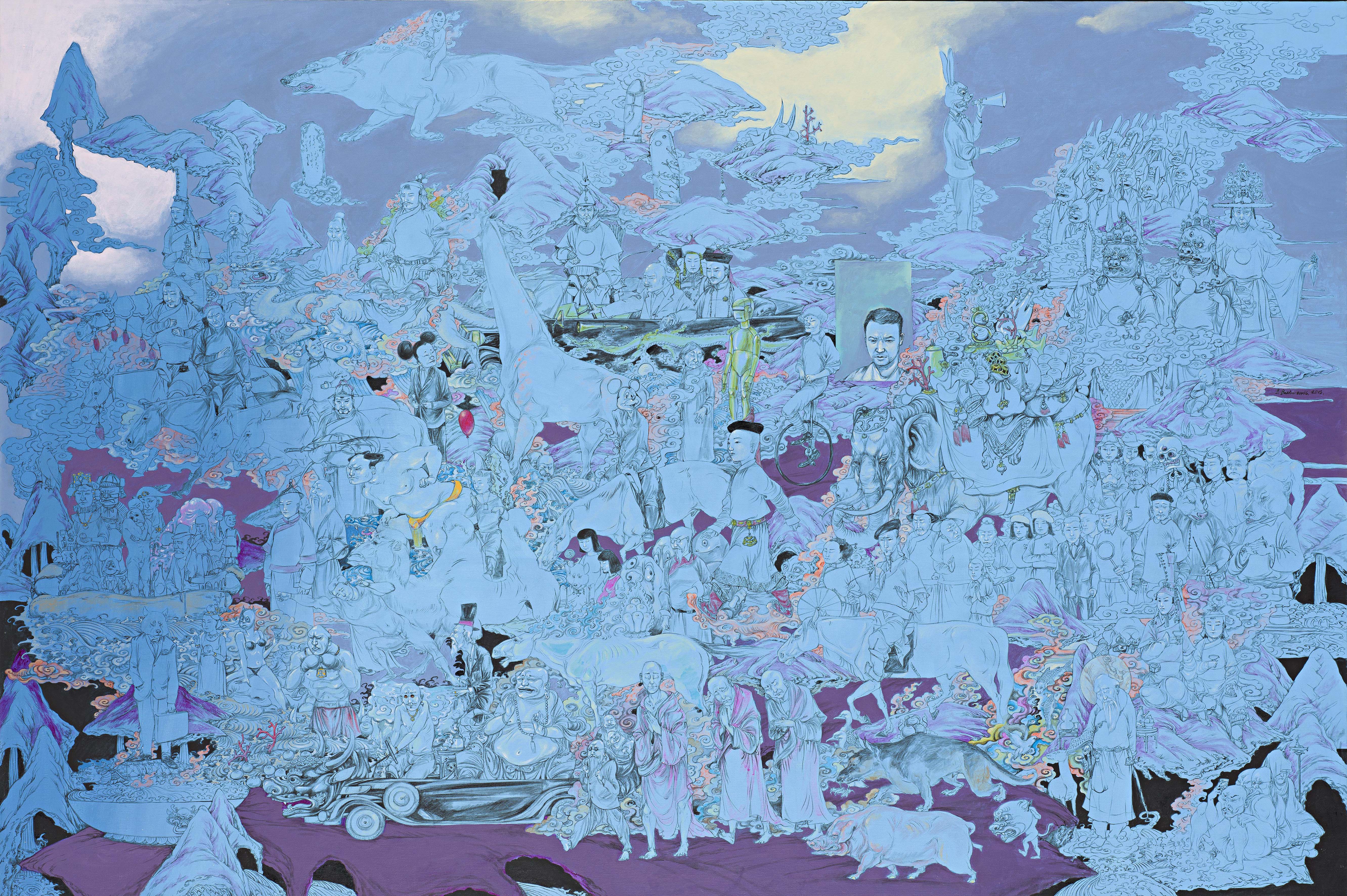 BAATARZORIG BATJARGAL Mongolia b.1983 Nomads 2014 Synthetic polymer paint on canvas 100 x 150cm Purchased 2015. Queensland Art Gallery | Gallery of Modern Art Foundation Grant / Collection: Queensland Art Gallery
