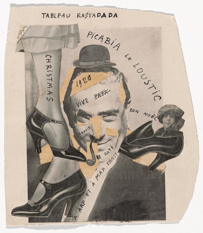 Seen at top: Francis Picabia. Tableau Rastadada (Rastadada Painting). 1920. Cut‑and‑pasted printed paper on paper with ink, 7 1/2 × 6 3/4″ (19 × 17.1 cm). The Museum of Modern Art, New York. Gift of Abby Aldrich Rockefeller by exchange. © 2016 Artist Rights Society (ARS), New York/ADAGP, Paris. Photo: The Museum of Modern Art, Peter Butler