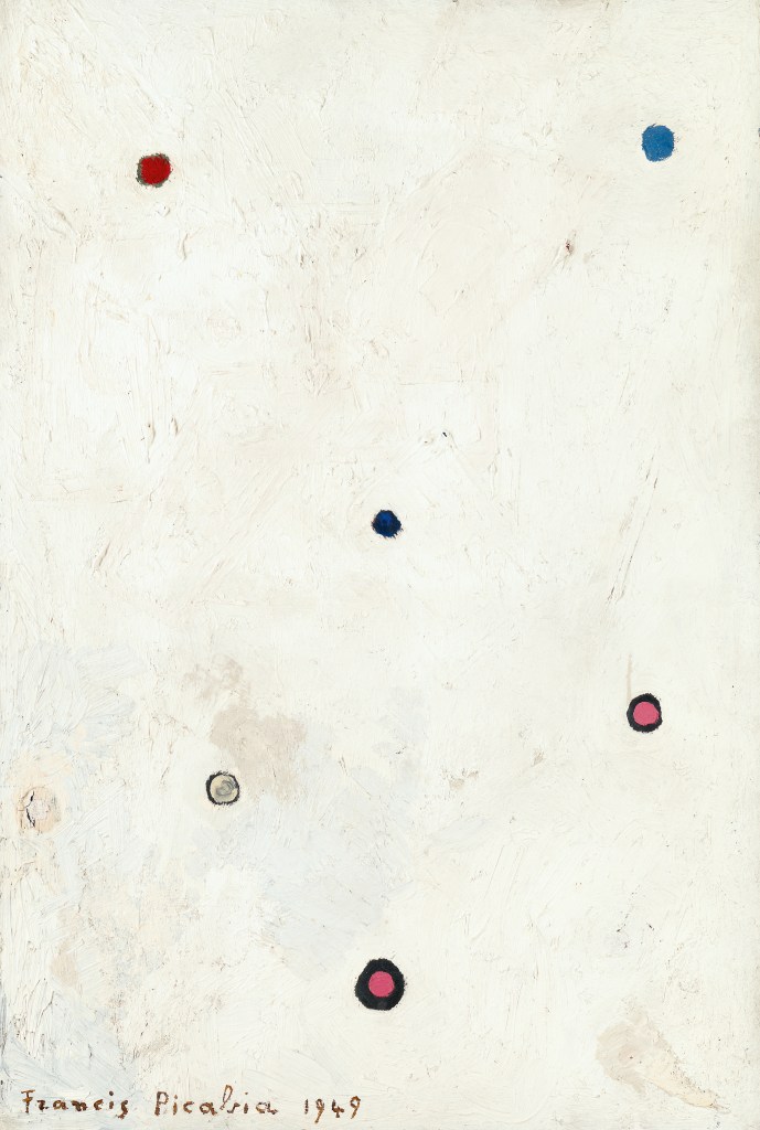 Francis Picabia. Lâcheté de la barbarie subtile (Carte à jouer) (Cowardice of Subtle Barbarism [Playing Card]). 1949. Oil on board, 29 15/16 × 20 1/2″ (76 × 52 cm). Private collection. Courtesy Galerie Michael Werner, Märkisch Wilmersdorf, Cologne and New York. . © 2016 Artist Rights Society (ARS), New York/ADAGP, Paris. Photo courtesy Galerie Michael Werner